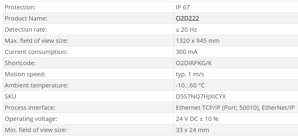 Ifm O2D222 02DIRPKG/K Photoelectric Sensor